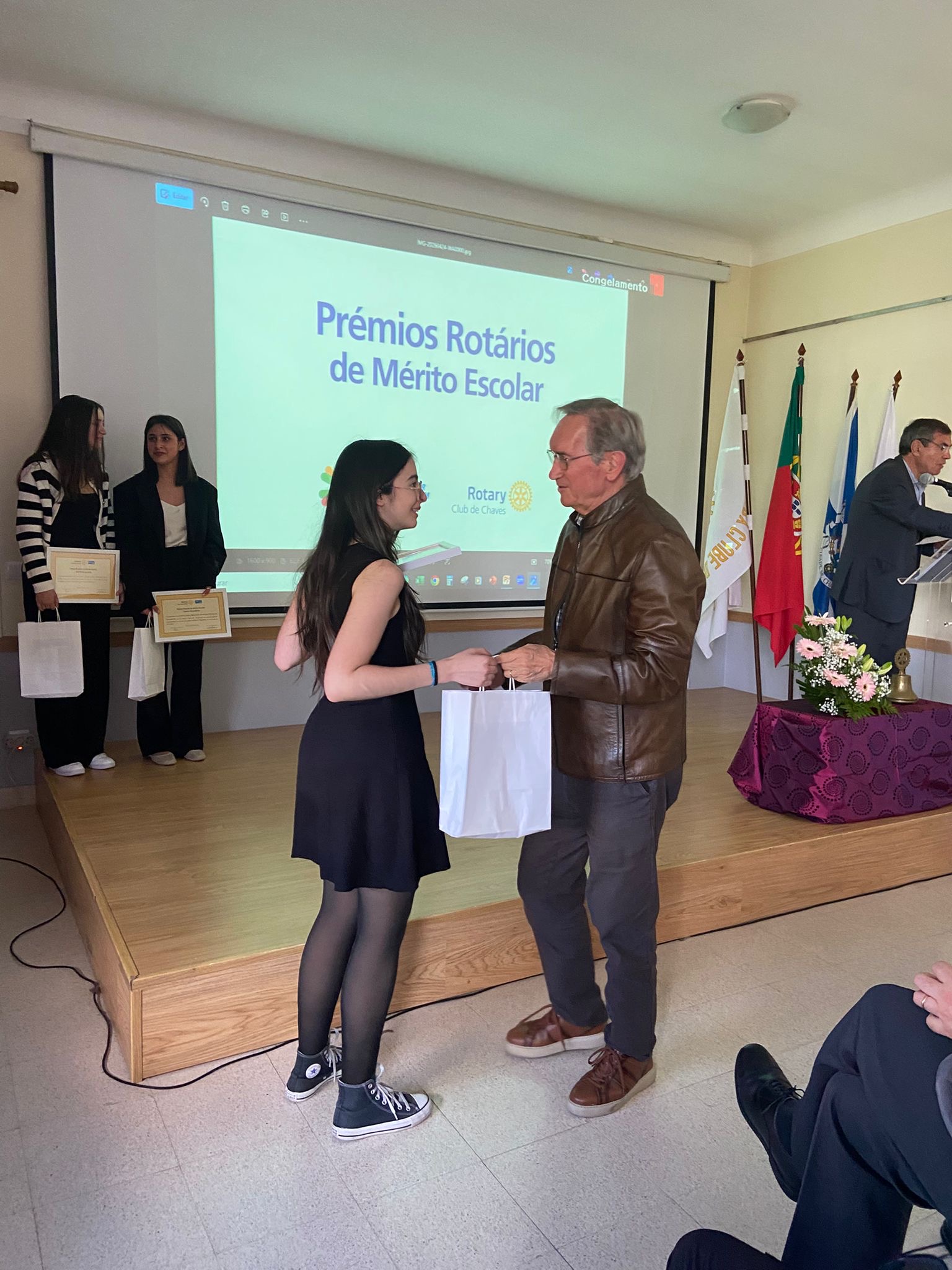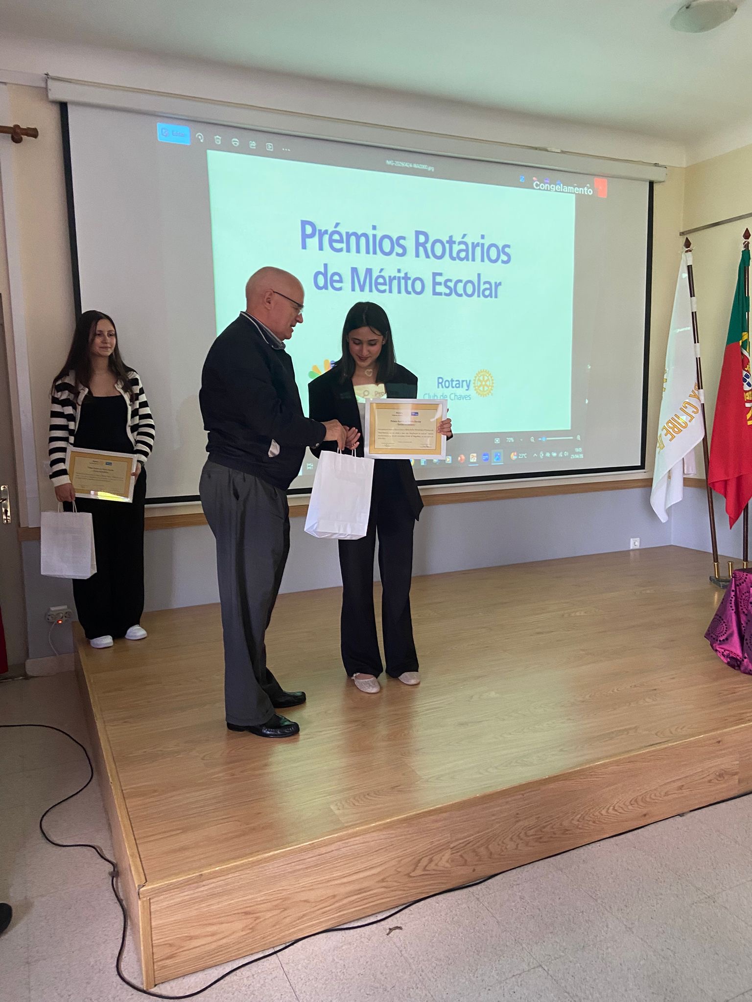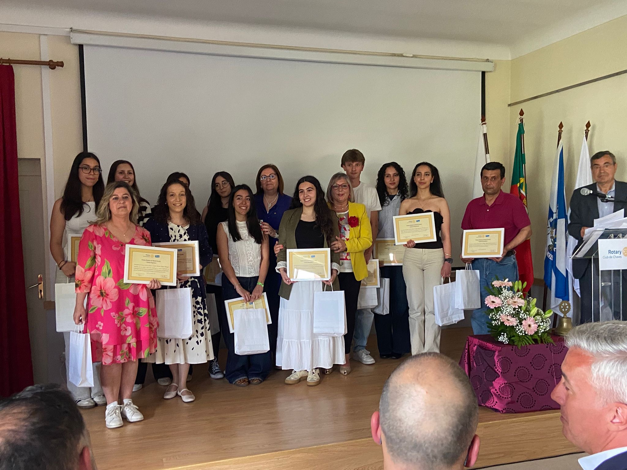 O Rotary Club de Chaves distinguiu, na tarde deste sábado, 25 de abril, 19 alunos de várias escolas do concelho, durante a Cerimónia de Atribuição dos Prémios Rotários de Mérito Escolar, que decorreu no Salão Nobre da Universidade Sénior do Rotary Club de Chaves.