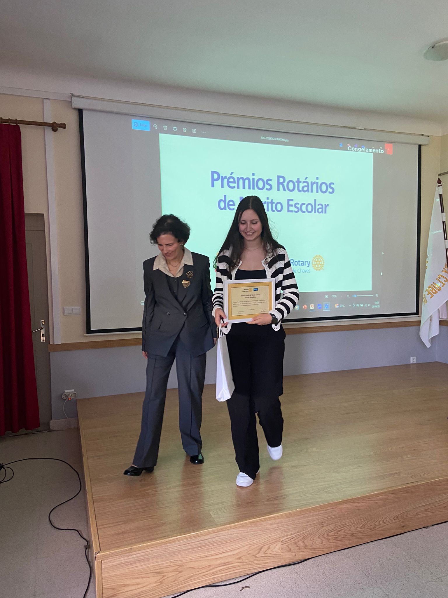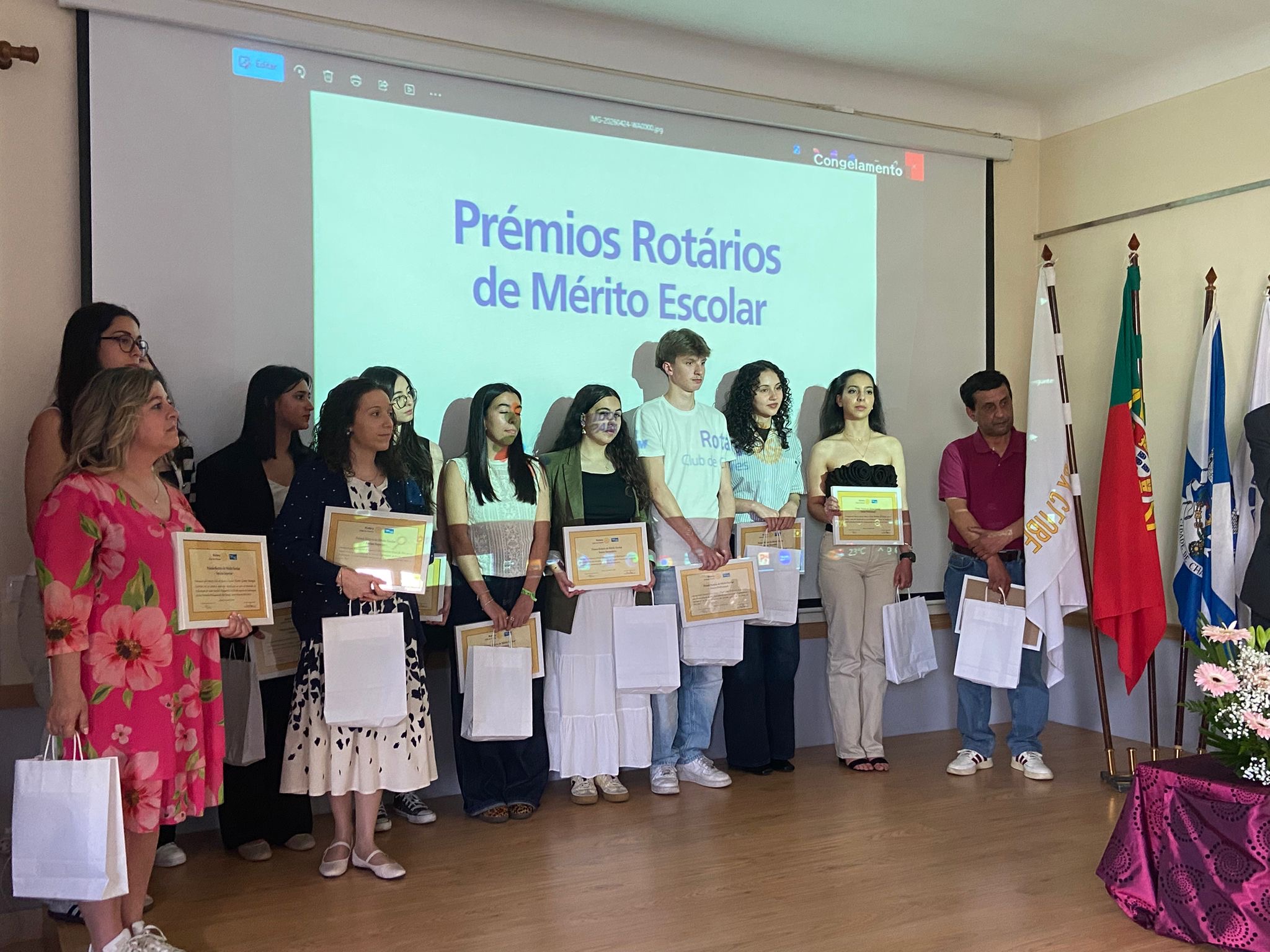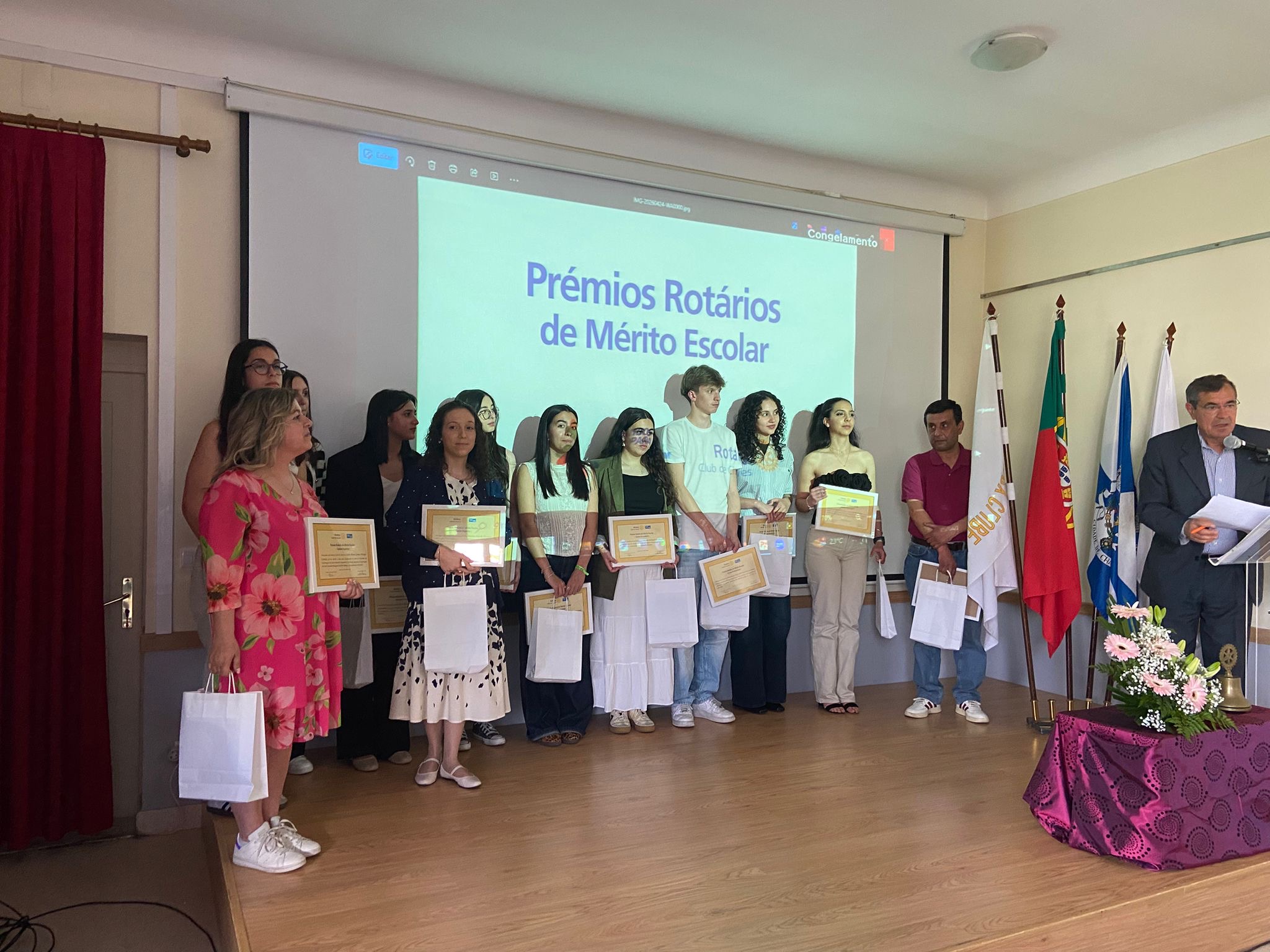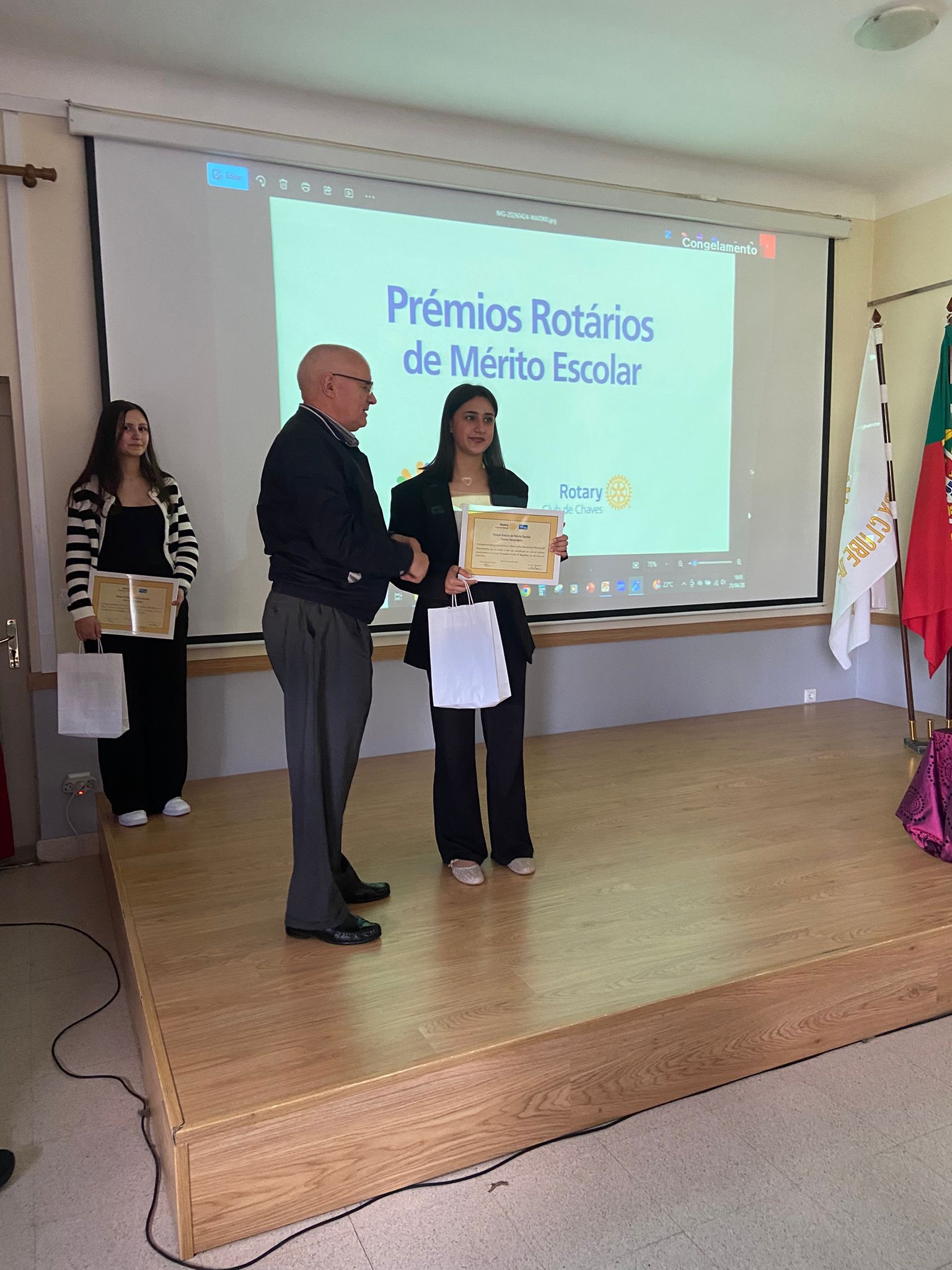 O Rotary Club de Chaves distinguiu, na tarde deste sábado, 25 de abril, 19 alunos de várias escolas do concelho, durante a Cerimónia de Atribuição dos Prémios Rotários de Mérito Escolar, que decorreu no Salão Nobre da Universidade Sénior do Rotary Club de Chaves.