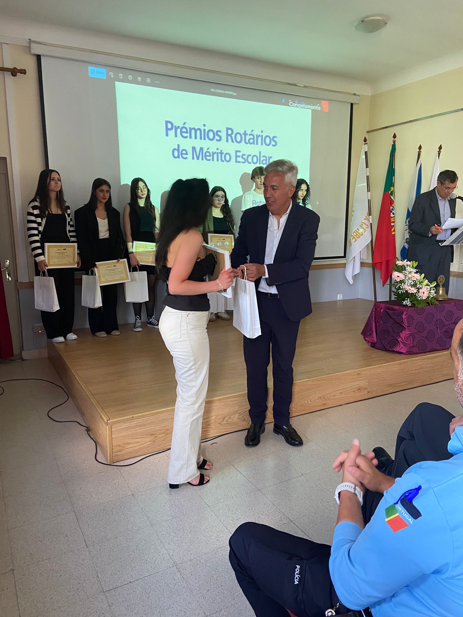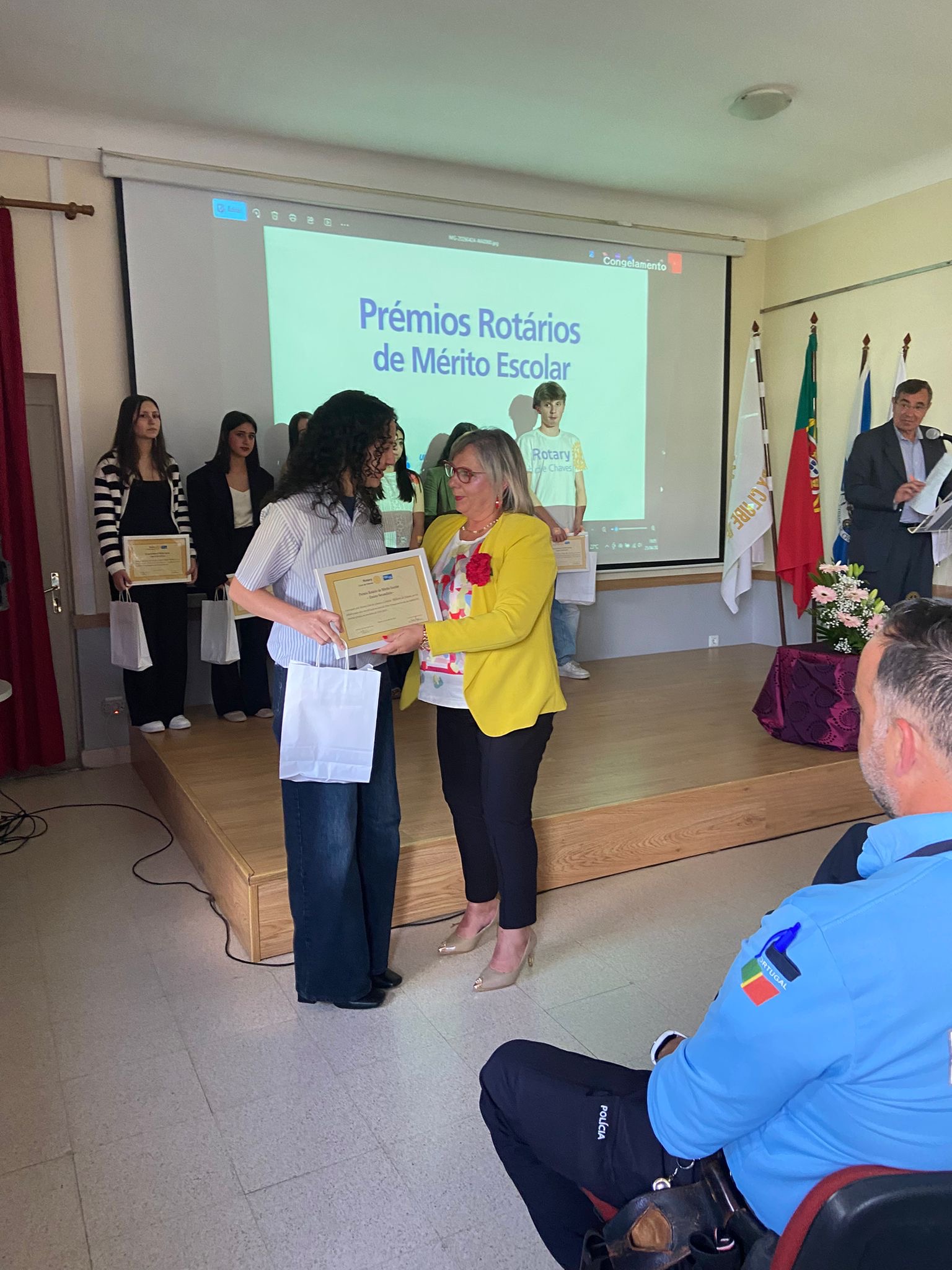 Foram premiados alunos das escolas Dr. António Granjo, Dr. Júlio Martins, Fernão de Magalhães e da Escola Superior de Saúde da Cruz Vermelha Portuguesa do Alto Tâmega, numa cerimónia que contou com a presença da presidente do Rotary Club de Chaves, Manuela Pais, do secretário executivo da Comunidade Intermunicipal do Alto Tâmega e Barroso (CIMAT), Ramiro Gonçalves, bem como de várias entidades convidadas, nomeadamente a Câmara Municipal de Chaves, representada pela vereadora Paula Chaves, a Polícia de Segurança Pública e o Regimento de Infantaria n.º 19, representado pelo Comandante, o Coronel Ribeiro de Faria.